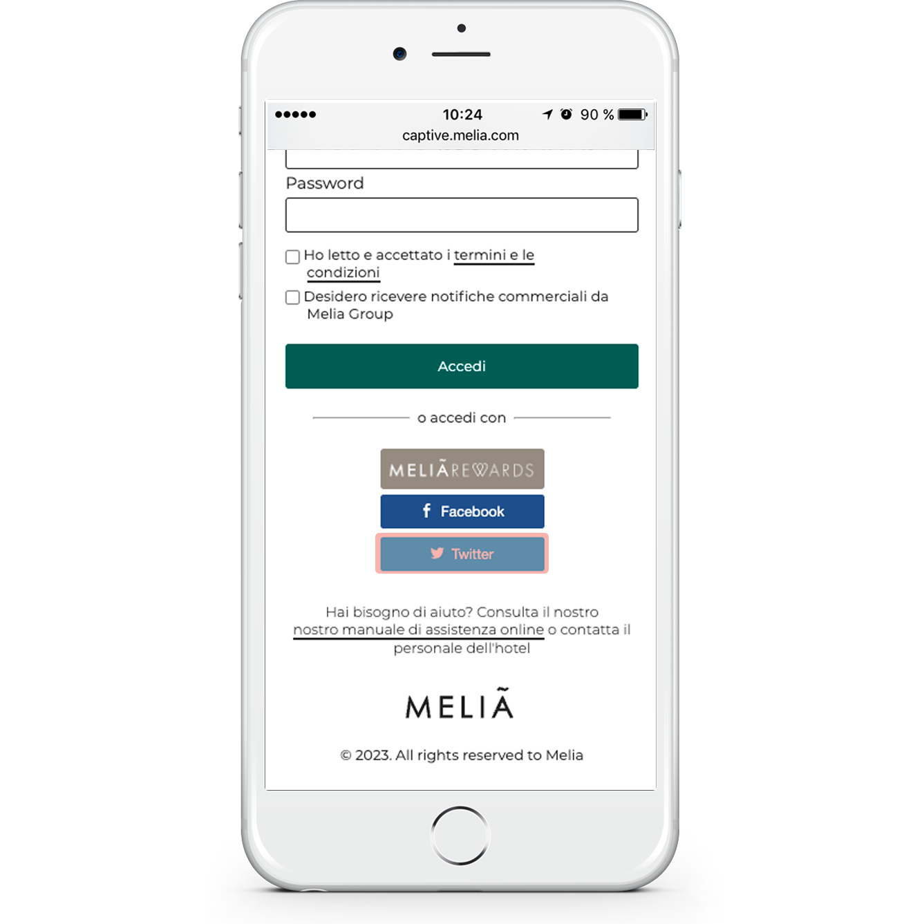 Registrazione con Twitter